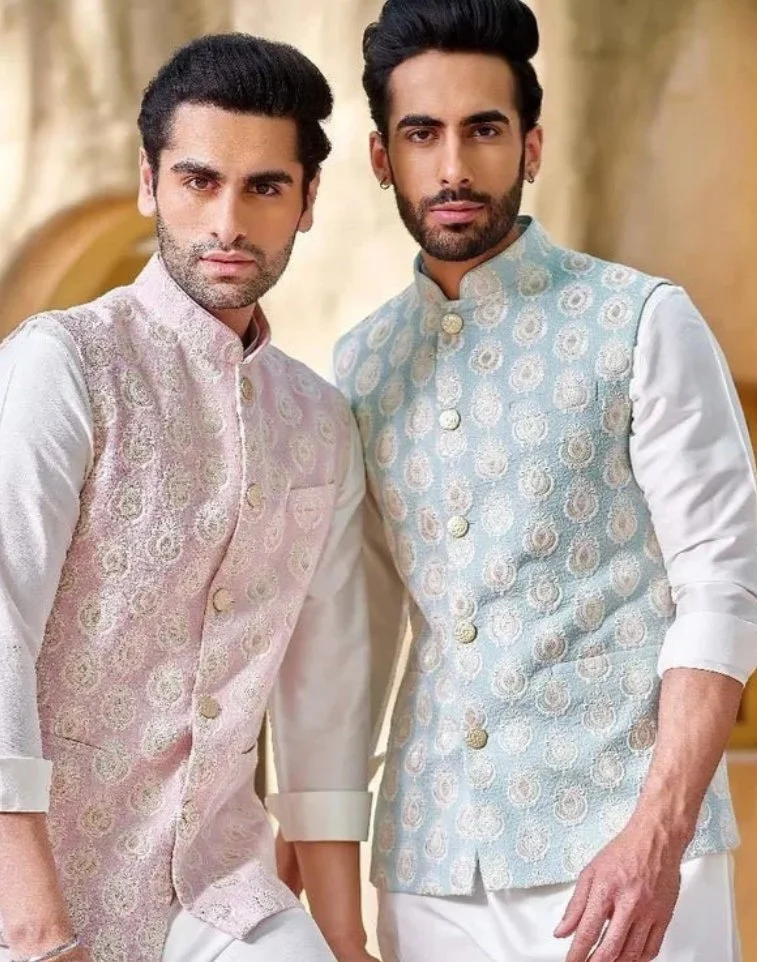 Men: Kurtas or sherwani suits are both excellent options. An Indian style vest can also be great. You can wear pants you already own or you can purchase Indian style pants, the tighter ones are known as churidar or the looser ones are dhoti. See photos below for some examples.